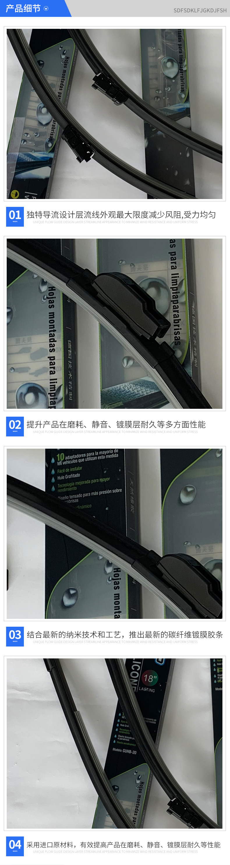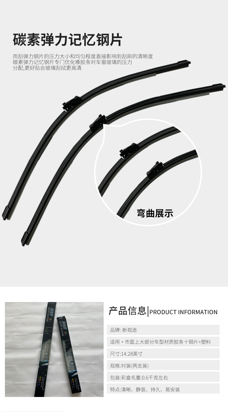 新視途汽車配件有限公司針對汽車售后市場,潛心專業專注的研究硅膠鍍膜技術,專注改良、開發多款配方和工藝,多年來根據不同雨刷款型的需要,推出多系列通用和專用鍍膜膠條,目前結合最新的納米技術和工藝,再次推出最新的碳纖維鍍膜膠條,且采用德國進口原材料,有效提高產品在磨耗、靜音、鍍膜層耐久等性能,是普通雨刷數倍。